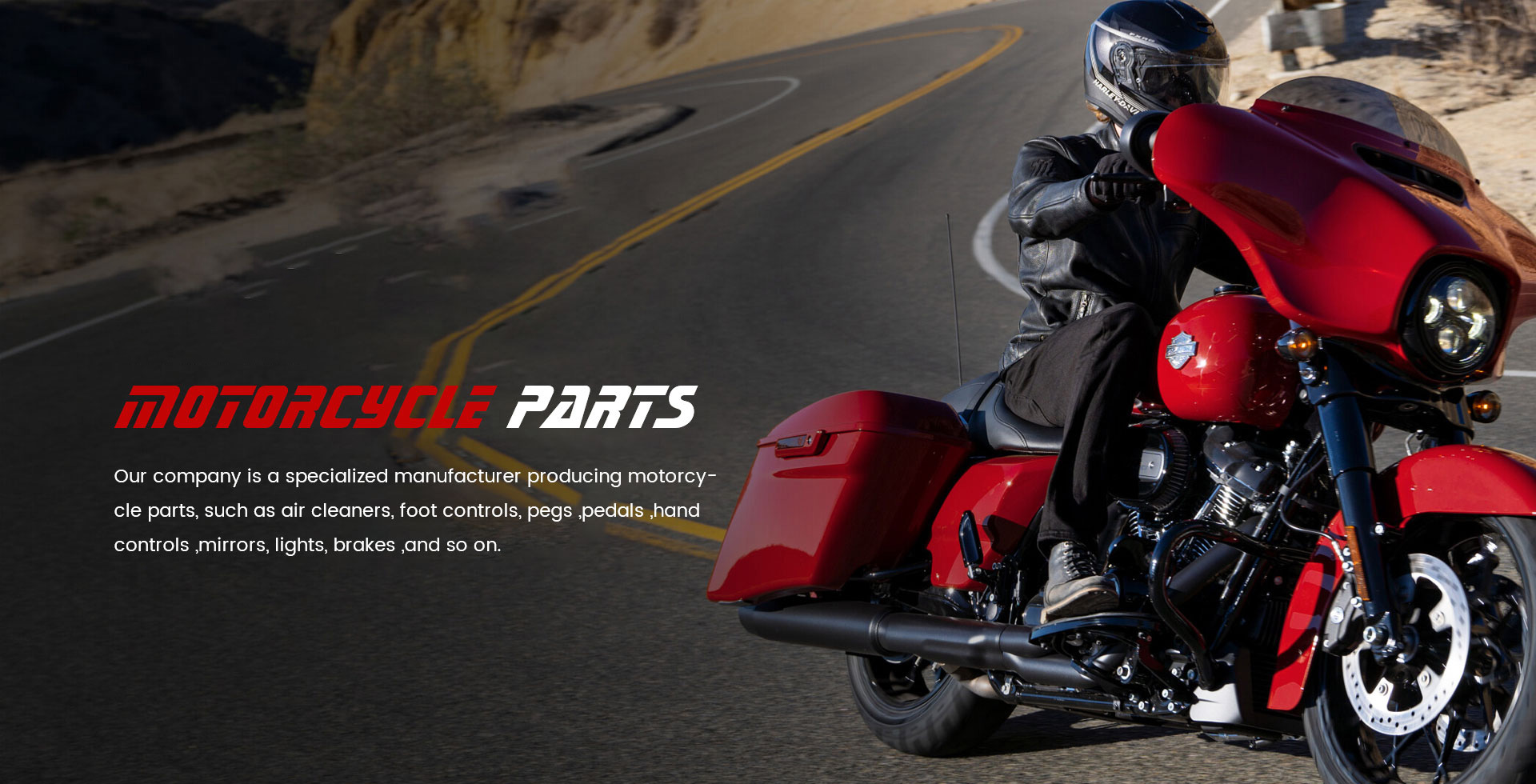 Our company is a specialized manufacturer producing motorcycle parts, such as air cleaners, foot controls, pegs ,pedals ,hand controls ,mirrors, lights, brakes ,and so on. We have a professional team to develop new product, reliable quality , and after- sale guarantee.